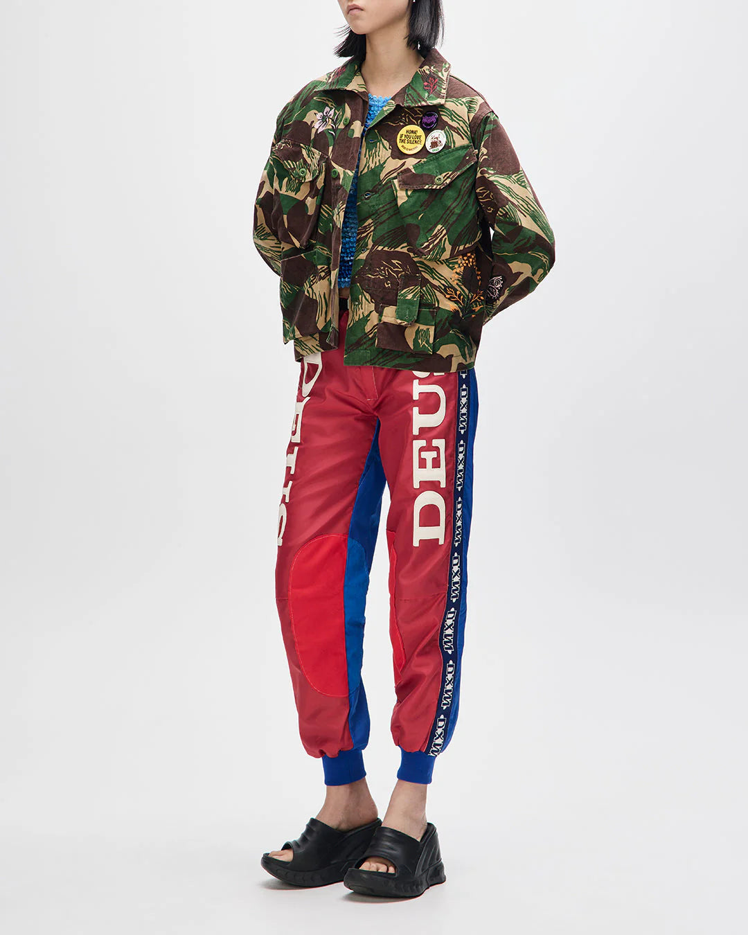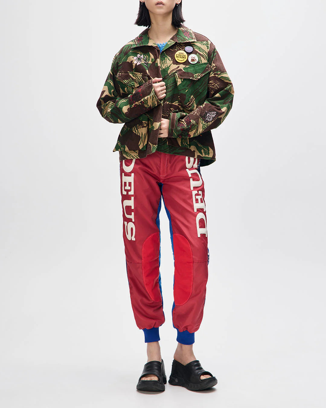Ancorata all’ethos immutabile di Deus Records, la nuova collezione scorre avanti e indietro tra nostalgie di stile. Silhouette esagerate e tessuti floreali personalizzati si mescolano a dettagli di ispirazione militare e sportiva, celebrando l’espressione individuale.