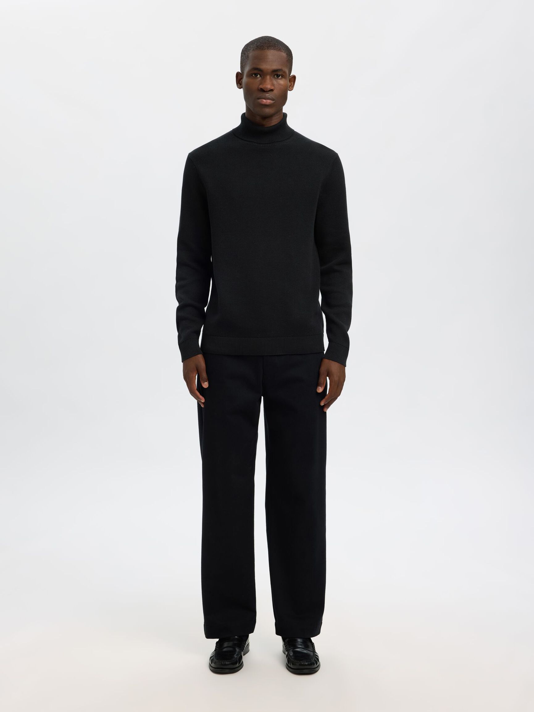 Non puoi mai sbagliare con un dolcevita lavorato a maglia. Metti questo sotto una giacca di pelle o un impermeabile con degli stivali stringati.